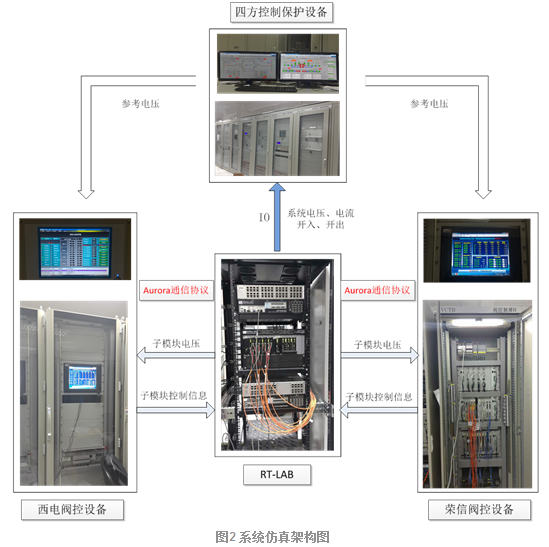科梁针对项目实际工程主回路拓扑仿真需求,在技术层面上做到了单桥臂串联仿真可以达到1024个子模块的规模。科梁提供的解决方案采用两套基于FPGA仿真机分别仿真云南站和广西站MMC阀体,基于CPU仿真设备仿真交直流电网,其中IO机箱仿真两个站全部的模拟量和数字量,在工程中采用双通道Aurora协议通讯方式,该方法的成功应用为未来更高电平MMC测试提供了技术方案;并在方案中提供了双端32组避雷器,能够模拟现场避雷器动作情况;该方案采用了SSN解耦算法,能够仿真全部阀体严重故障。